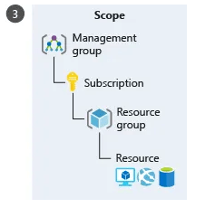In Azure, you can specify a scope at multiple levels: management group, subscription, resource group, or resource. Scopes are structured in a parent-child relationship. When you grant access at a parent scope, those permissions are inherited by the child scopes. For example, if you assign the Contributor role to a group at the subscription scope, that role is inherited by all resource groups and resources in the subscription.