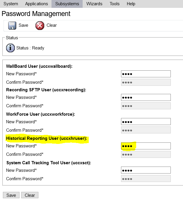 • uccxhruser:  Has access to many configuration and historical tables in the UCCX database. It can only be used for custom historical reporting and Cisco Unified Workforce Management (WFM).