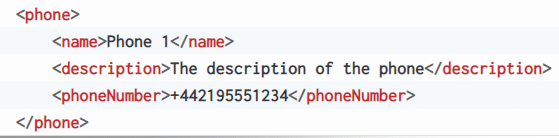 SOAP provides an XML-based communication protocol and encoding format for communication. For example, to describe a phone using XML, you would define the following structure.
