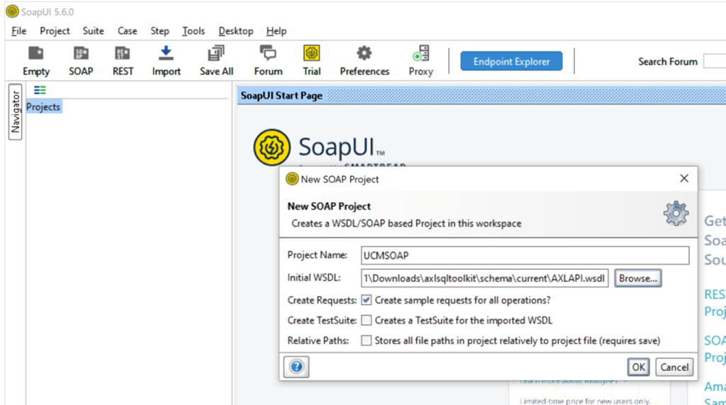 Now you can load this WSDL into SoapUI, get things configured, and start sending queries. Follow these steps to load the WSDL into SoapUI.