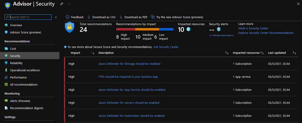 Now you can click on the vulnerability pointed out and check which resources are impacted and the solution suggested by the Advisor and apply it if it is appropriate for your environment.