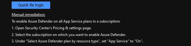 It is interesting that if you click on the option “Quick Fix Logic” the Advisor will provide you with a json script to solve the issue