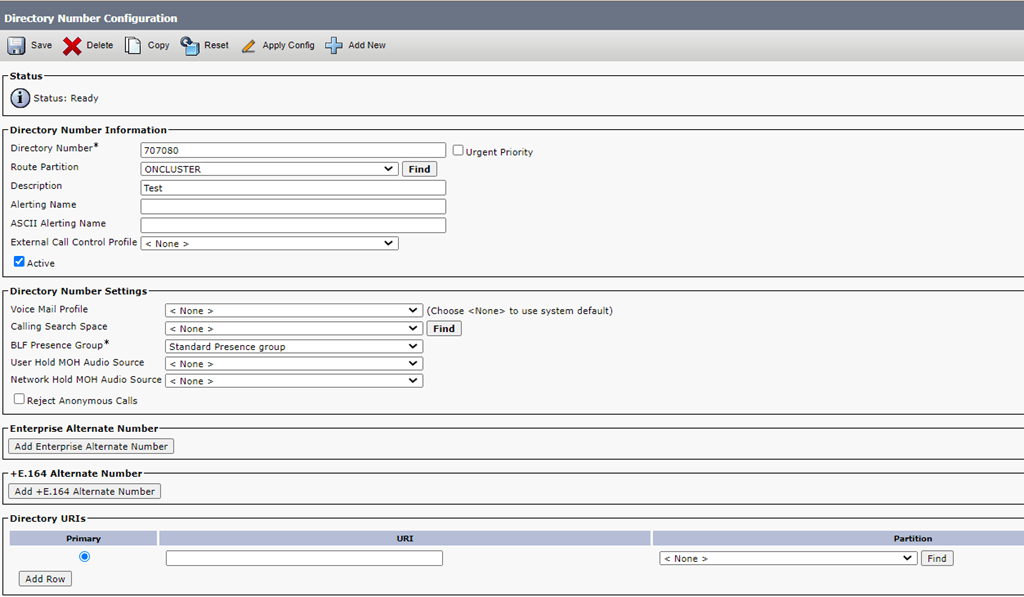 ‘description’: ‘Test’, ‘routePartitionName’: ‘ONCLUSTER’})