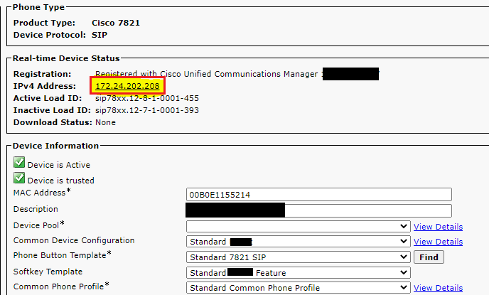 Go to CUCM, find the Phone you want to access and get the IP Address (Phone must be registered)