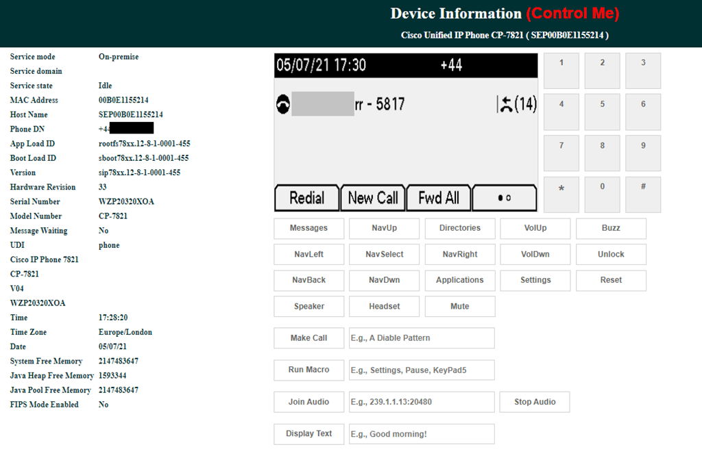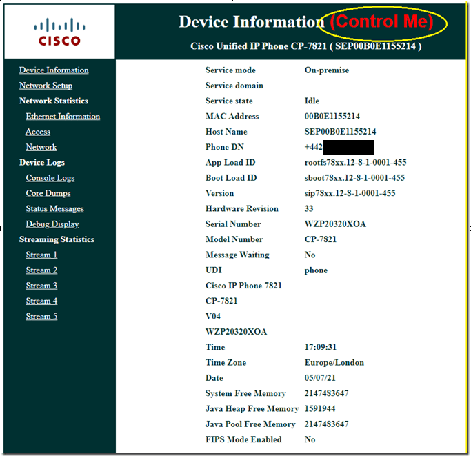 As soon as you click on the IP Address, to access the Phone’s information, you will notice now something different. The option Control Me will be displayed.