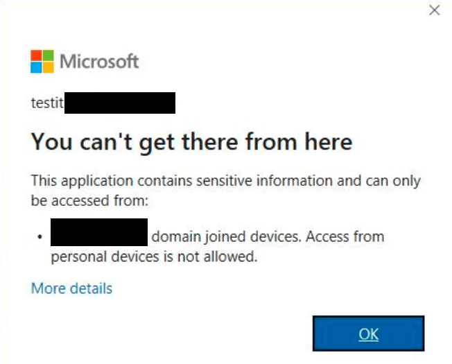 Ok, now I’m going to test access through a personal device to see if conditional Access will or will not allow Sharepoint access (The result should be access denied).