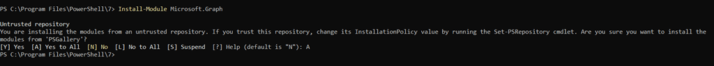 Use the following command: Install-Module Microsoft.Graph -Scope CurrentUser