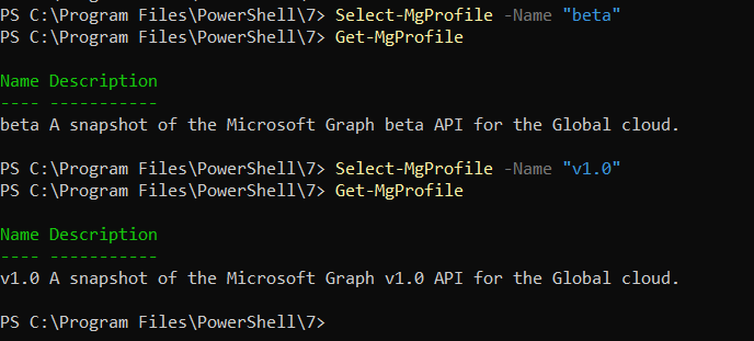 To use the BETA profile: Select-MgProfile -Name “beta”
