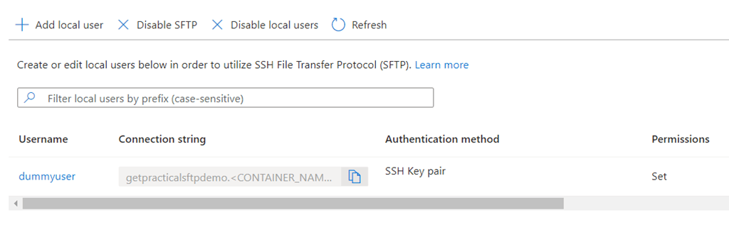 sftp-data). - Set the public access level to Private (no anonymous access).