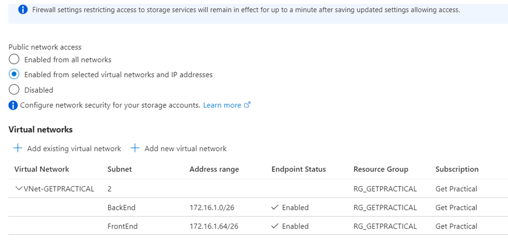 - Add any virtual networks and IP addresses that should have access to the SFTP service.