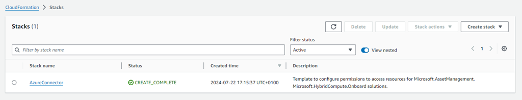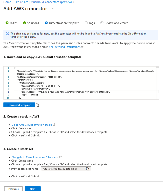 3. Create a new stack using the downloaded template. This template establishes the necessary roles and permissions for the Multicloud Connector.