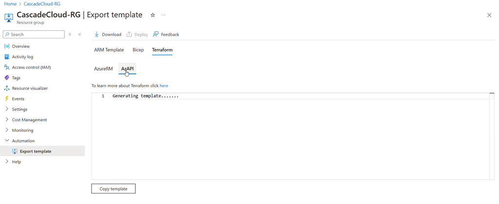 - Choose Terraform or Bicep as the export format to download your IaC configurations and start managing your infrastructure more efficiently.