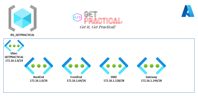 Add-AzVirtualNetworkSubnetConfig -Name DMZ -VirtualNetwork $VirtualNetwork -AddressPrefix 172.16.1.128/28